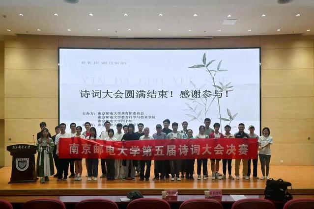 “春未老,风细柳斜斜。试上超然台上看……”,信达国学社成员集体朗诵《望江南·超然台作》,拉开了南京邮电大学第五季诗词大会决赛帷幕。此次大赛以“青年不轻 逐梦有年”为主题,经过八强赛、四强赛、最终冠军赛,宋恒毅选手以“江南忆,最忆是杭州”一句获得胜利,赢得冠军。院关工委委员李雷、余武两位老师给获奖学生颁奖,合影留念,并勉励信达国学社, 人生青春不老,诗词大会更创辉煌。
