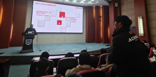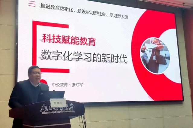 1222日下午,由教务处主办、教育科学与技术学院承办的南京邮电大学“紫金大讲堂”——企业家讲座第134次活动在中天科技报告厅举行。知名上市教育企业—中公教育集团副总裁张红军先生做题为“科技赋能教育:数字化学习引领教育变革”的讲座。讲座由教育科学与技术学院刘永贵副院长主持,全校师生代表近300人参加。