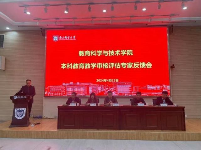 卢锋院长代表教育科学与技术学院作表态发言:一是高度认同。学院高度认同专家组提出的反馈意见,并会积极接受并消化这些意见,将其转化为改进的动力。二是迅速响应。针对专家组提出的各项问题和建议,学院将以“以评促建,以评促改,以评促管,以评促强”为目标,立即组织专题会议进行深入分析和研讨,确保问题得到及时解决。三是全面整改。学院将针对专家组提出的问题,组织专项工作组,制定详细的整改方案和时间表,落实改进措施,确保每一项建议都能得到实质性的回应。四是持续改进。学院将以此次审核评估为契机,建立起长效的改进机制。